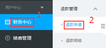 新购买5天内包年包月的云服务器以及云虚拟主机支持五天无理由退款,每个会员账号每种产品只有一次退款机会,请谨慎操作。 退款步骤1、进入”控制台”-“财务中心”-“退款管理”;