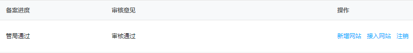 7、我司备案人员进行备案信息初审(1~2个工作日),审核通过之后,备案进度会变成“内审通过”,内审通过之后,请保持座机和手机的畅通,接入商和管局都会核实备案信息真实性,备案中的域名,备案期间保持关站的状态即可 8、内审通过后,我司备案人员会将备案信息提交到管局,提交到管局之后,部分省份需进行短信核验,核验通过之后,等待管局审核,备案进度变成“管局审核中”,管局审核时间一般是1~20个工作日内审核,请耐心等待管局审核 有关短信验证更多详情和操作步骤,参见备案短信核验文档。 9、备案成功 备案进度变成“管局审核通过”,审核结果将以短信及邮件形式通知;网站开站之后,请将正确网站备案号和当地管局的查询链接放置于备案首页页末
